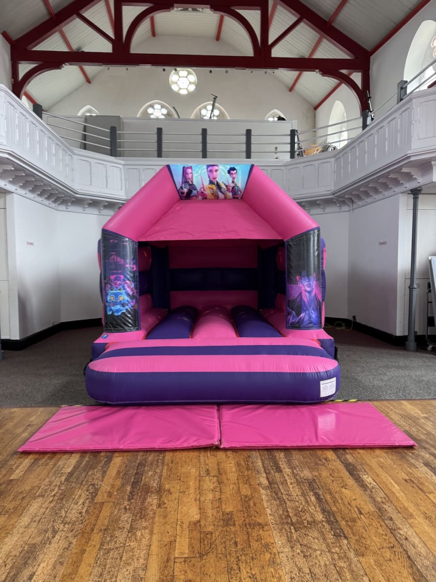 Ready to make your event extra sparkly? Contact us to reserve the 11 x 15 KPop Demon Hunters - Pink/Purple Castle and let the North Devon bouncing begin! 🎈