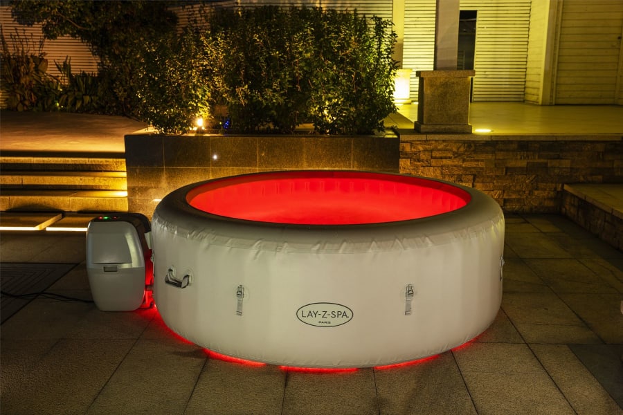 Our hot tub is equipped with 140 powerful air jets that provide a rejuvenating massage experience, relieving tension and stress from your body. 💆♂️ The built-in LED lighting create a serene ambiance, perfect for party time or relaxing evenings. 🌟 The remote‑controlled integrated colour‑changing LED lighting illuminates the water for a calming ambiance.
