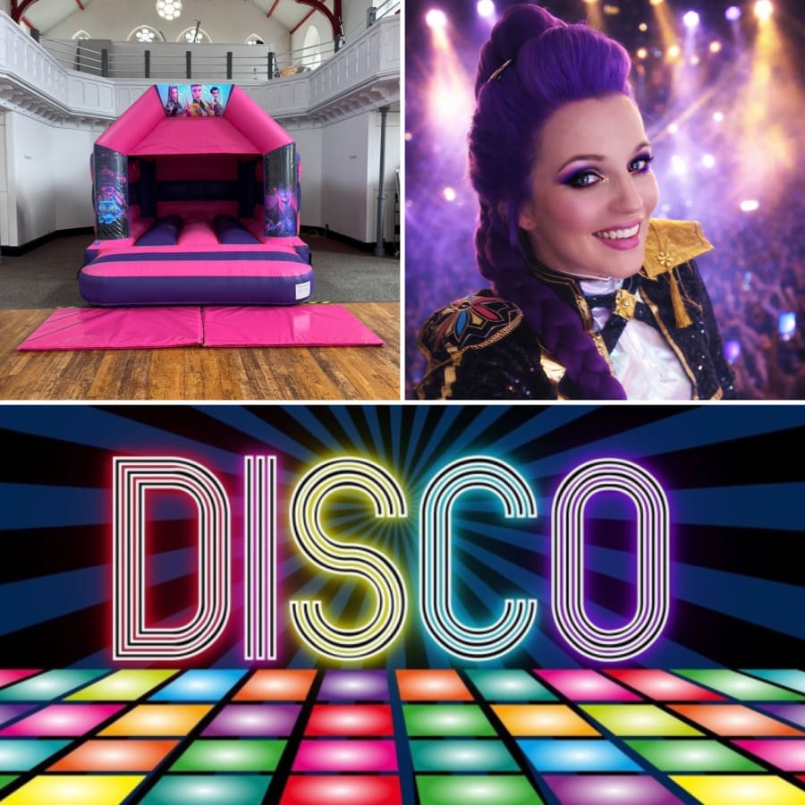 Booking is for a bouncy castle for the duration of your party, and a disco package with k-pop entertainer for 2 hours including games and prizes.