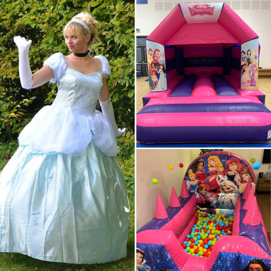 Make your little princess's dreams come true with our enchanting Princess Package! 🏰✨ This package includes a charming 11 x 15 princess bouncy castle, a 5 x 6 ball pit and a delightful Cinderella character appearance, creating a magical atmosphere for your special event.